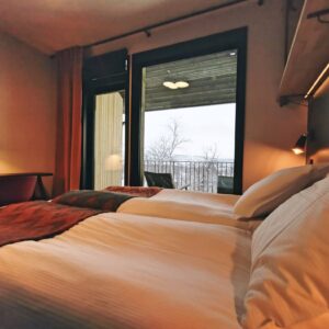 Positioned on the upper level of the main building, these rooms offer elevated perspectives over the surrounding landscapes. Guests can choose between lake or mountain views.