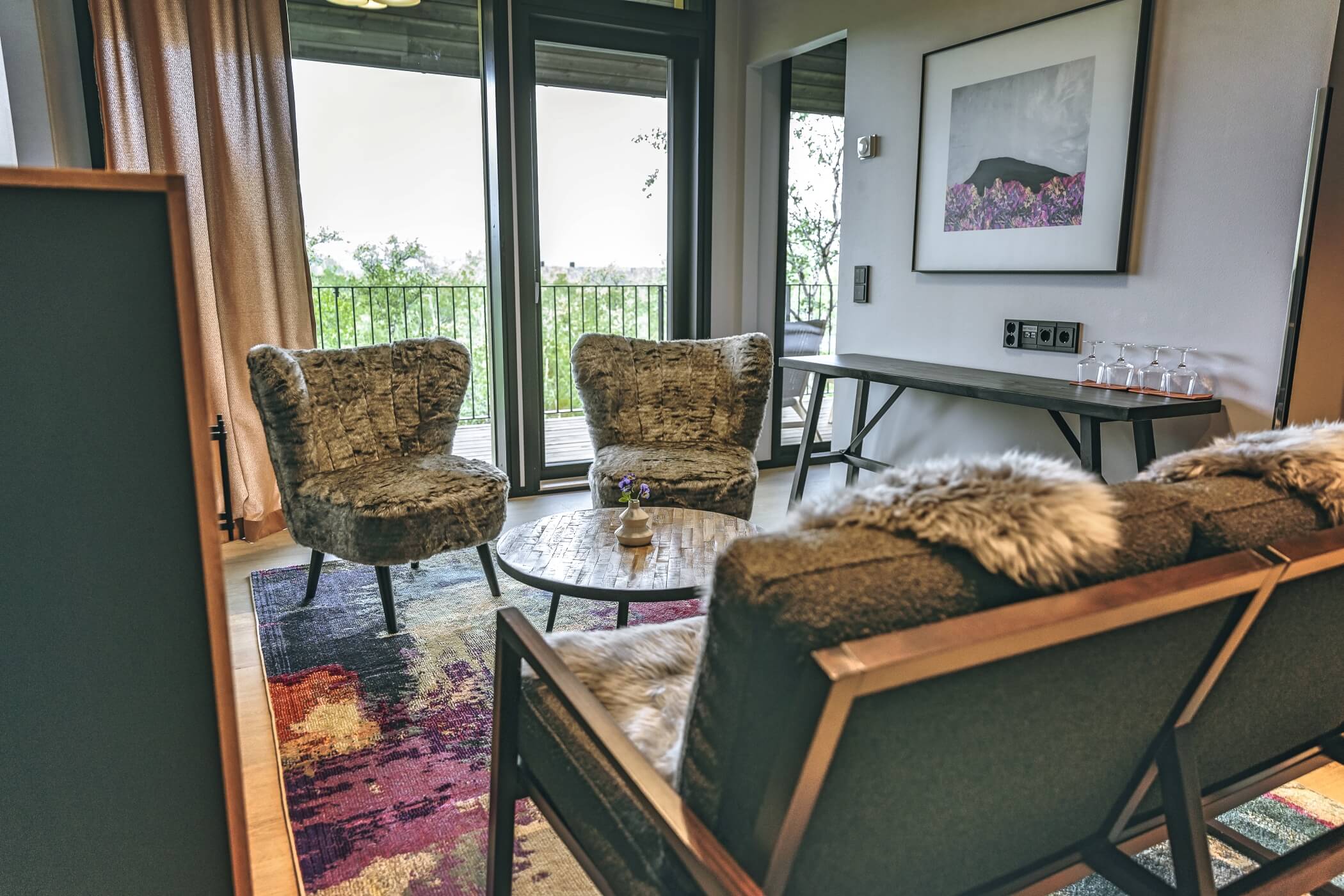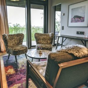 The interiors reflect a philosophy of thoughtful restraint – highlighting natural textures, earthy tones, and panoramic views. Every room prioritizes comfort, warmth, and visual connection with nature, deliberately omitting TVs to deepen the sense of retreat and renewal.