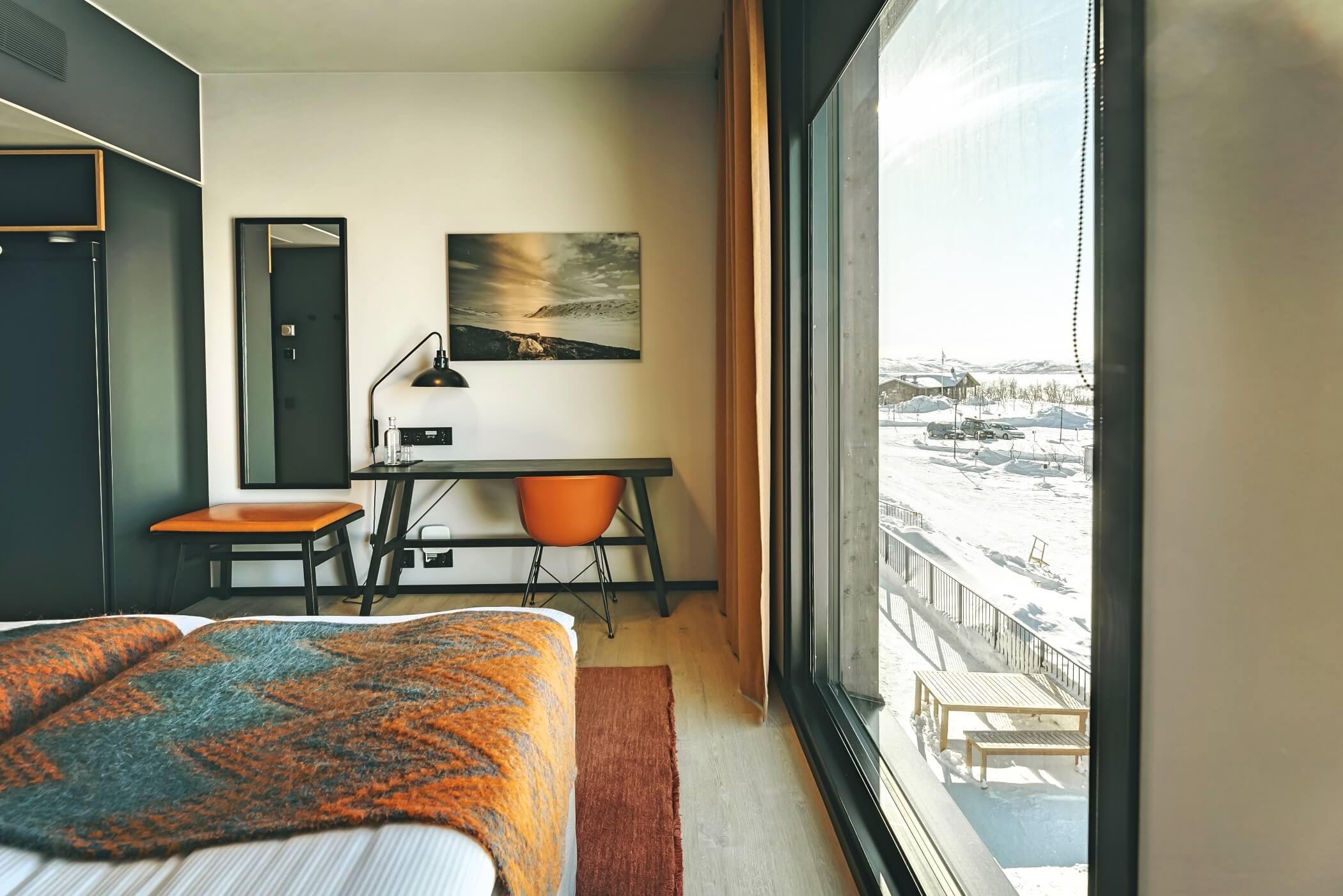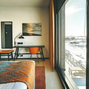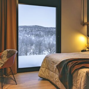 At Cahkal Hotel, the architectural language of Nordic minimalism blends seamlessly with rugged Arctic surroundings.