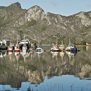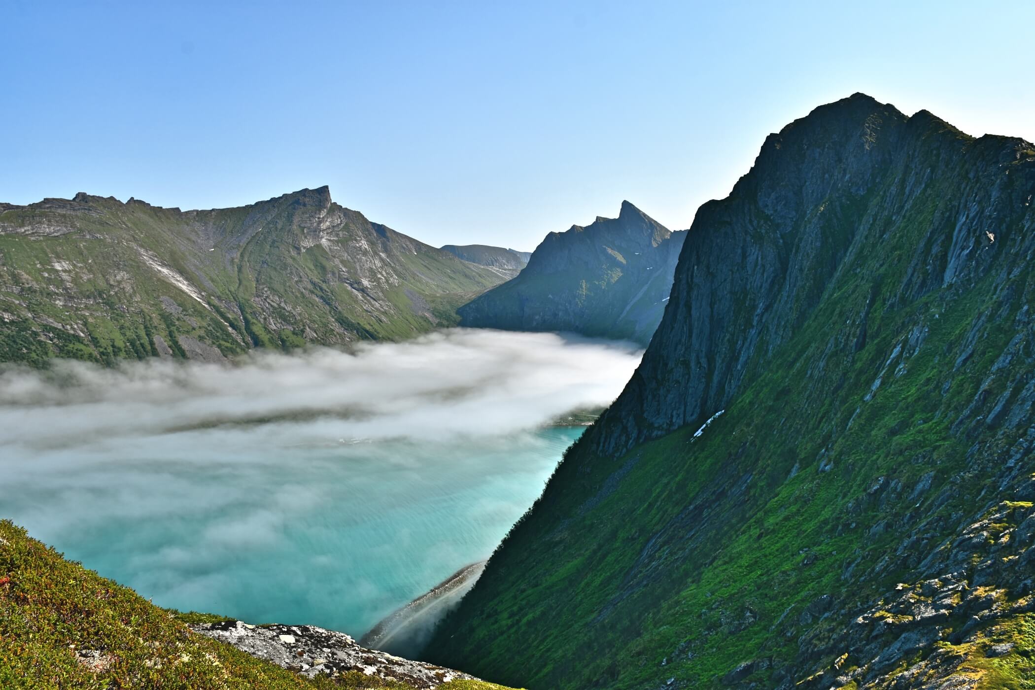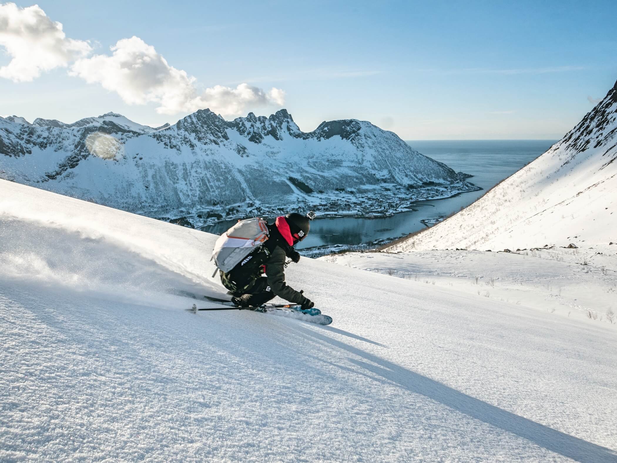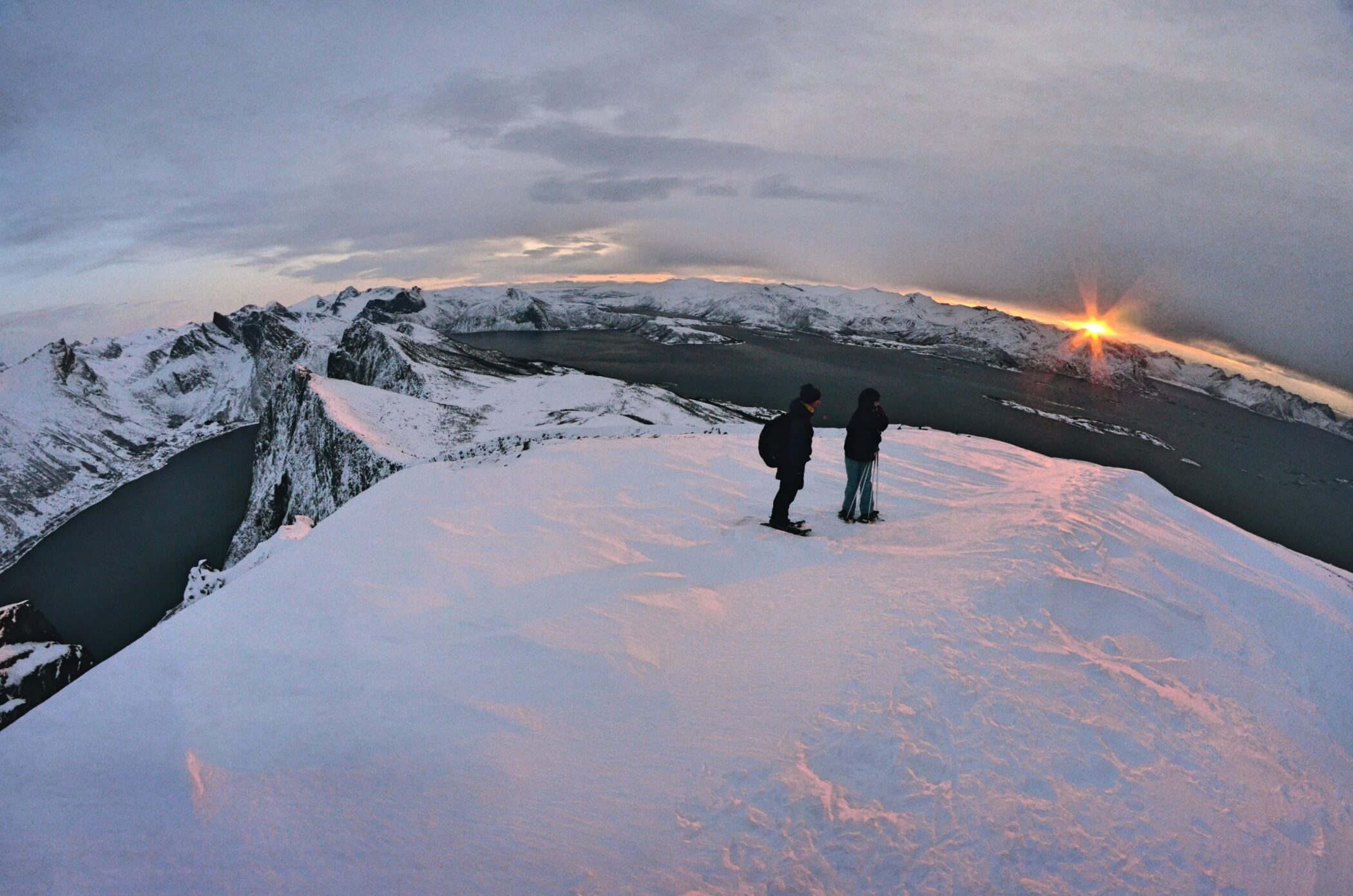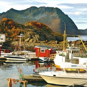 Northern Lights dance above the fjord, snowshoeing trails await, and ski touring brings you into the white wilderness. Polar nights enhance the stillness.