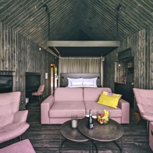 These rooms are pure Nordic poetry: driftwood-coloured interiors, wide glass façades, and lounge spaces that put you face-to-face with the Northern Lights and Midnight Sun.