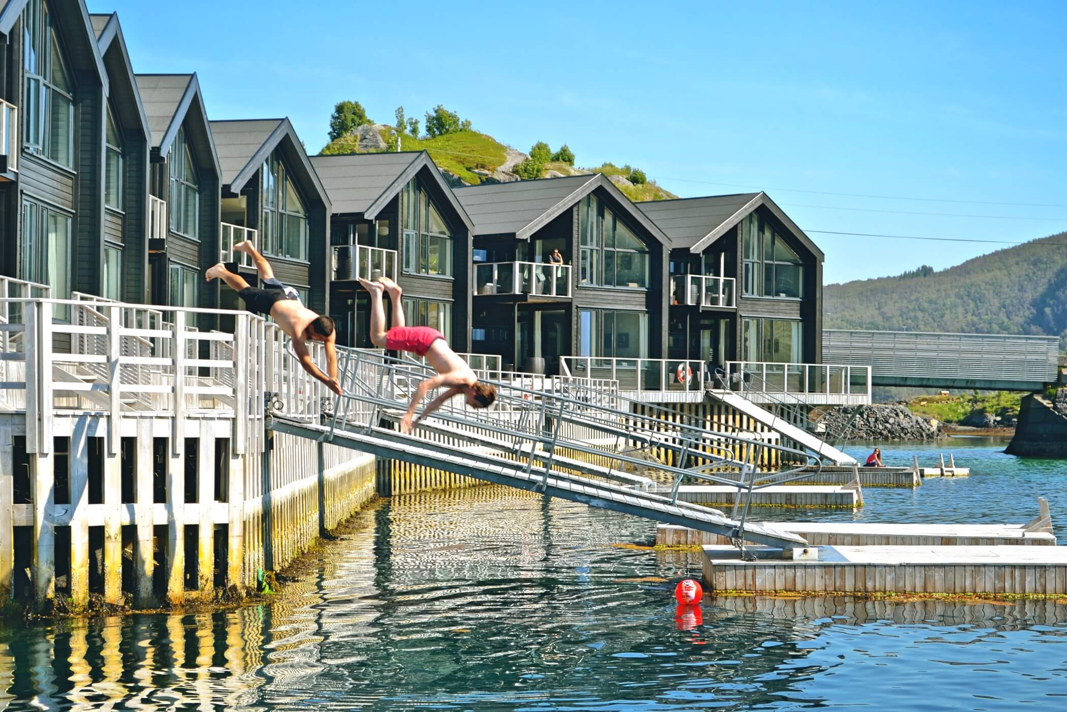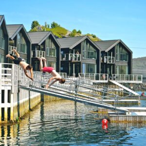 - 4 outdoor hot tubs with fjord views (24-person capacity)