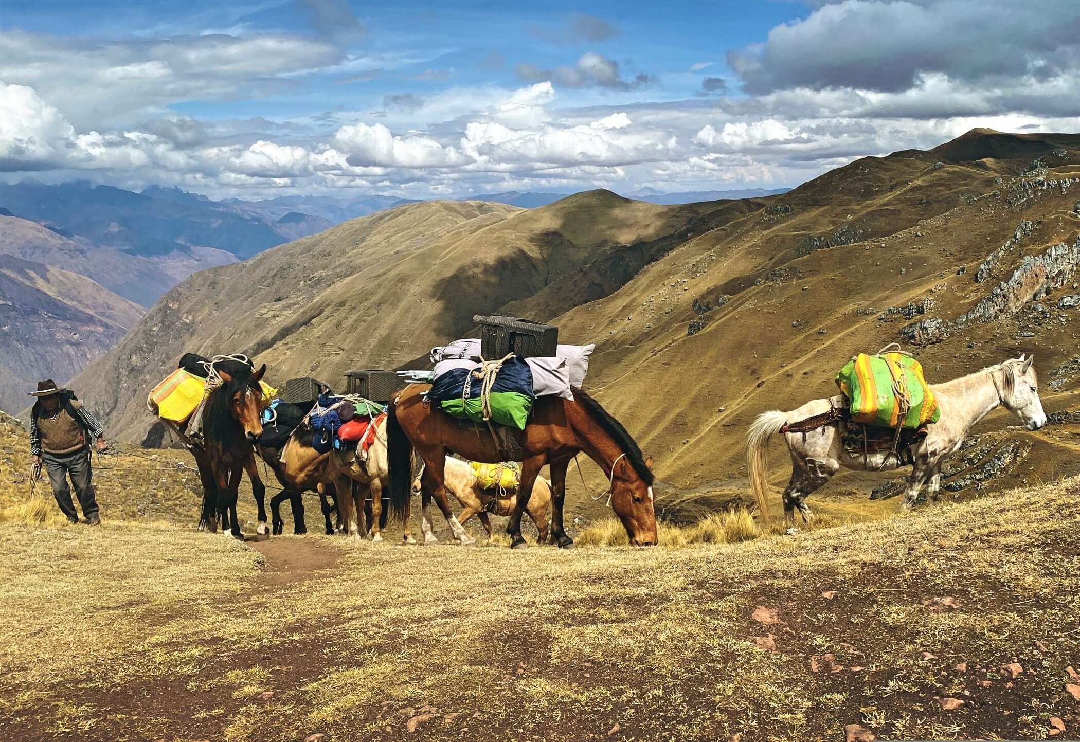 The Ausangate circuit is one of the most beautiful and remote multi-day treks in Peru. It loops around the massif for five or six days, crossing high-altitude passes, sulphuric turquoise lakes, red valleys, and open plains where alpacas graze beneath glacial cliffs.