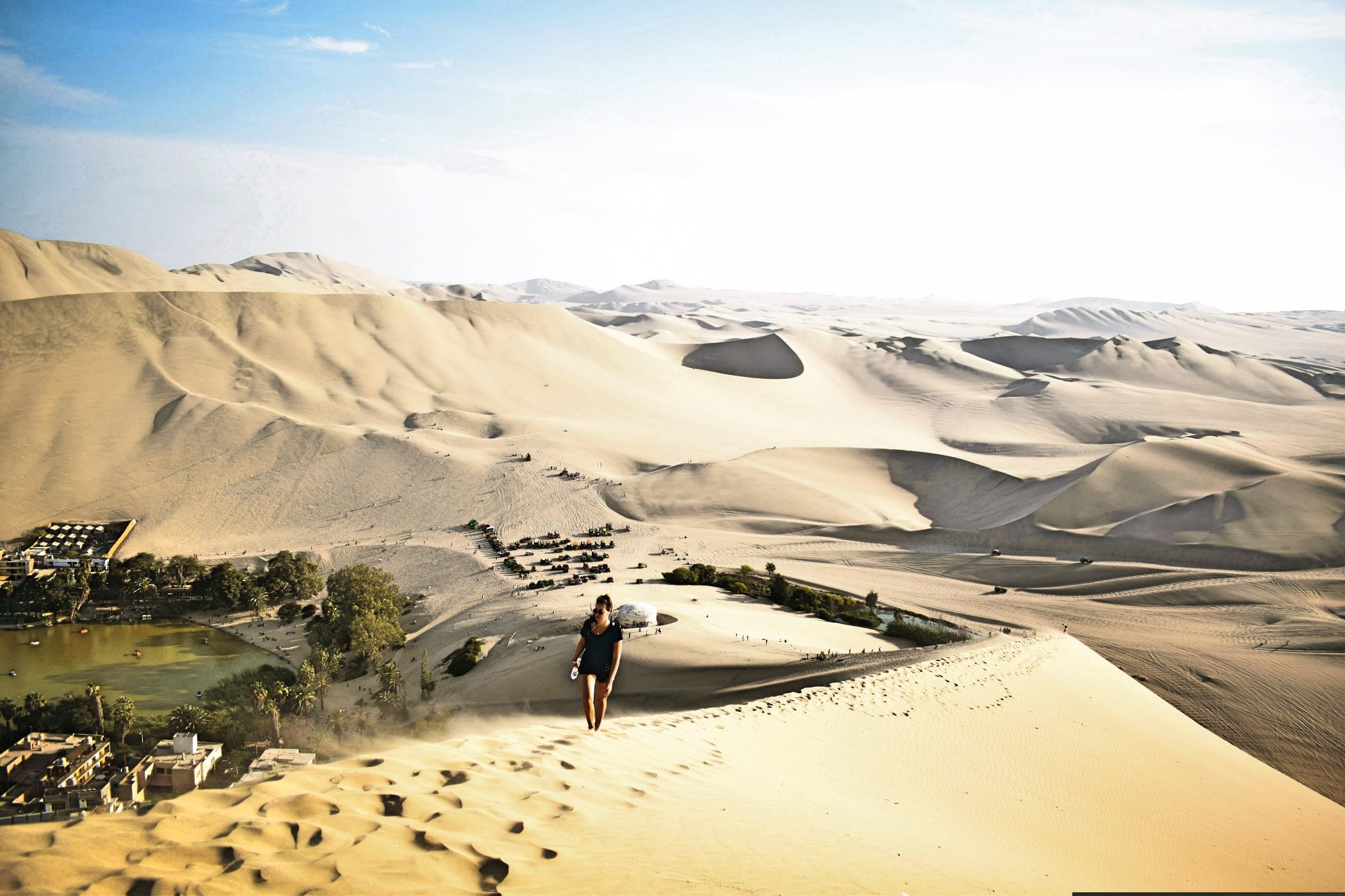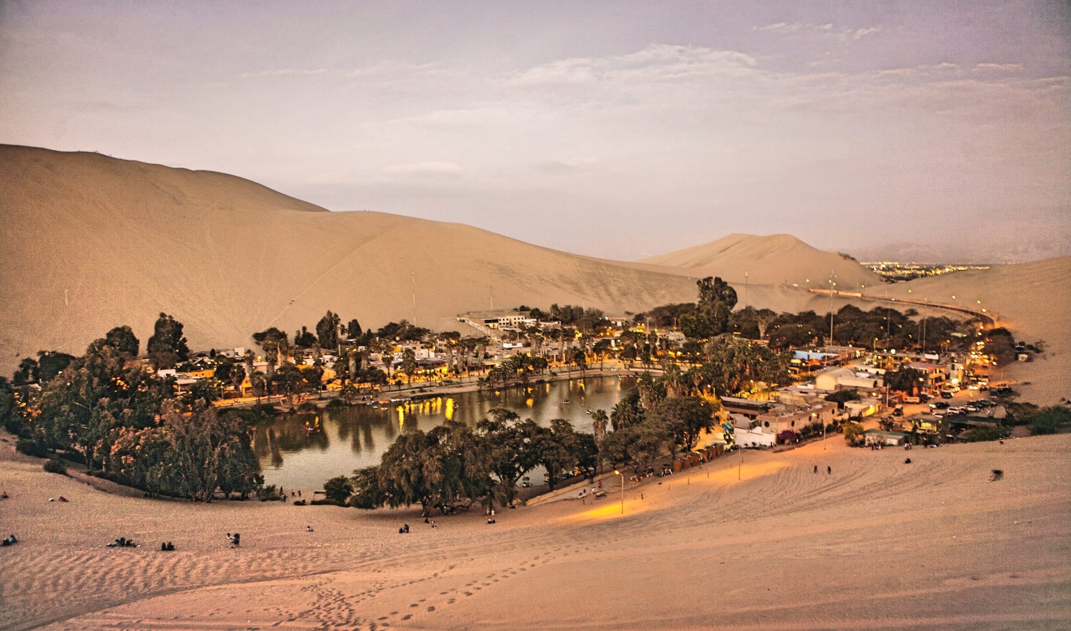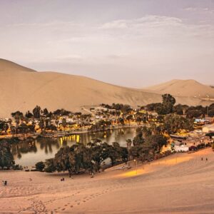 In the heart of this desert lies Huacachina, a tiny oasis town wrapped around a palm-fringed lagoon. It looks almost imaginary – like something drawn into the sand by hand.