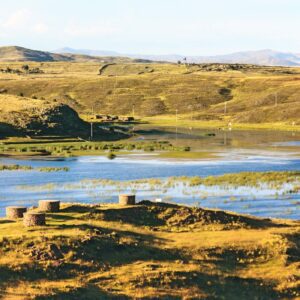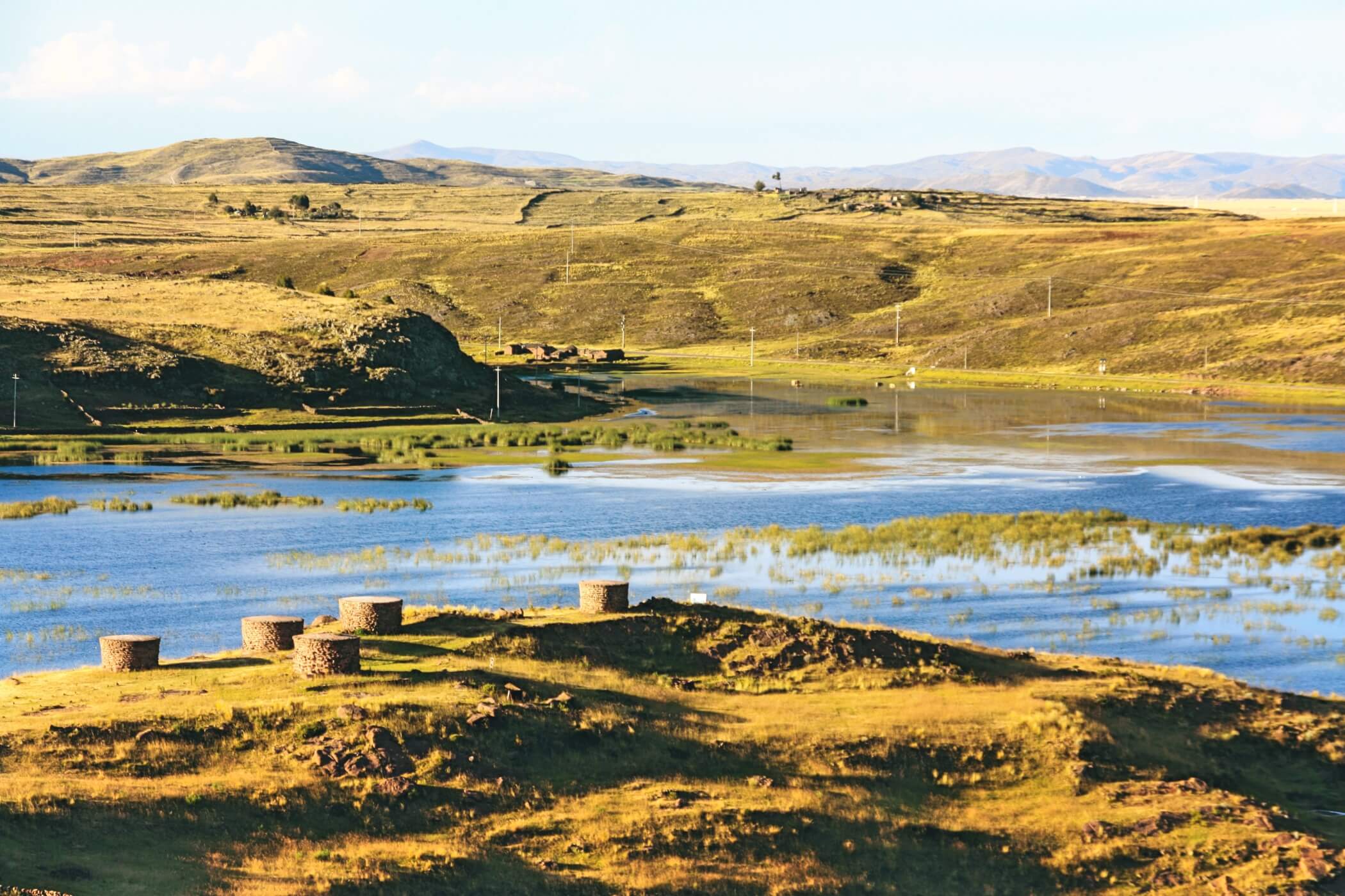 One of the most mysterious stops is Sillustani, a pre-Inca burial site where enormous cylindrical stone towers – chullpas – stand watch over the lake of Umayo.
